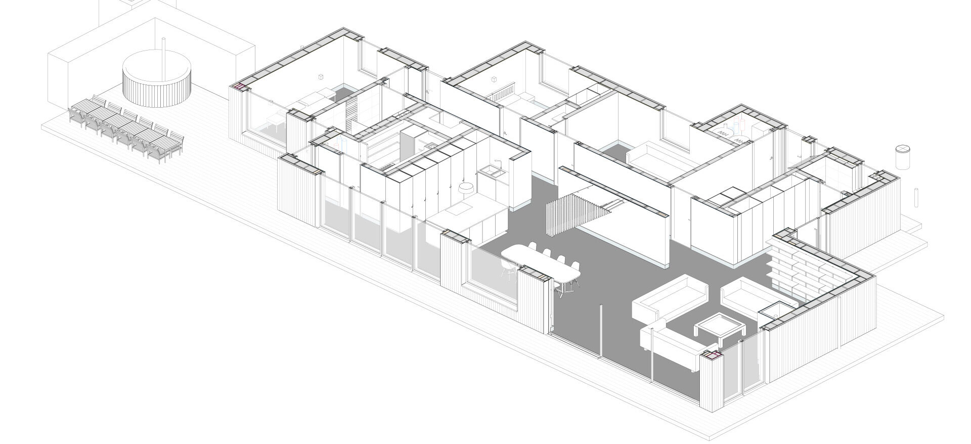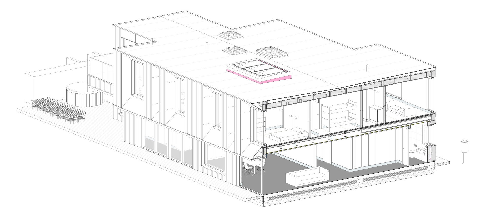 The net result of having this linked to Revit is that, by the time any BIM model is complete and fits the client’s specification, Facit Homes knows how much the building will cost to fabricate and to complete fit-and-finish to within 1%. It also has a full bill of materials quantities and a cost breakdown for the project. While the company relies on a chassis-based design, variations in designs show that this is not a limiting factor.