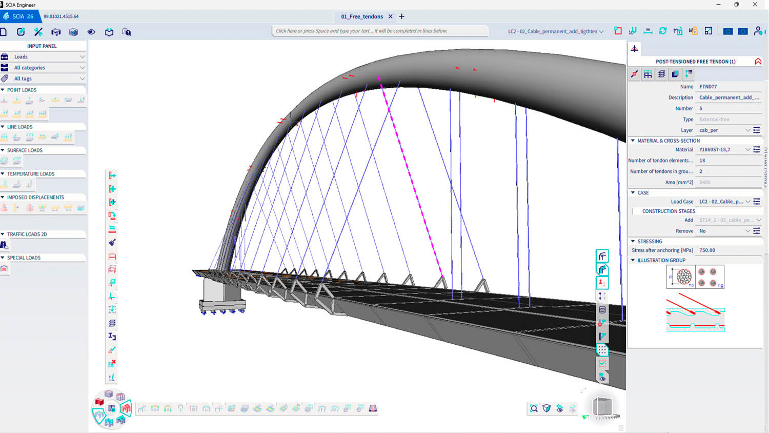 Additionally, modelling of external (unbonded) tendons for beams, slabs, walls and plates has been enhanced: users can define tendon paths manually or import them and perform staged analysis to simulate installation, tensioning and grouting processes.