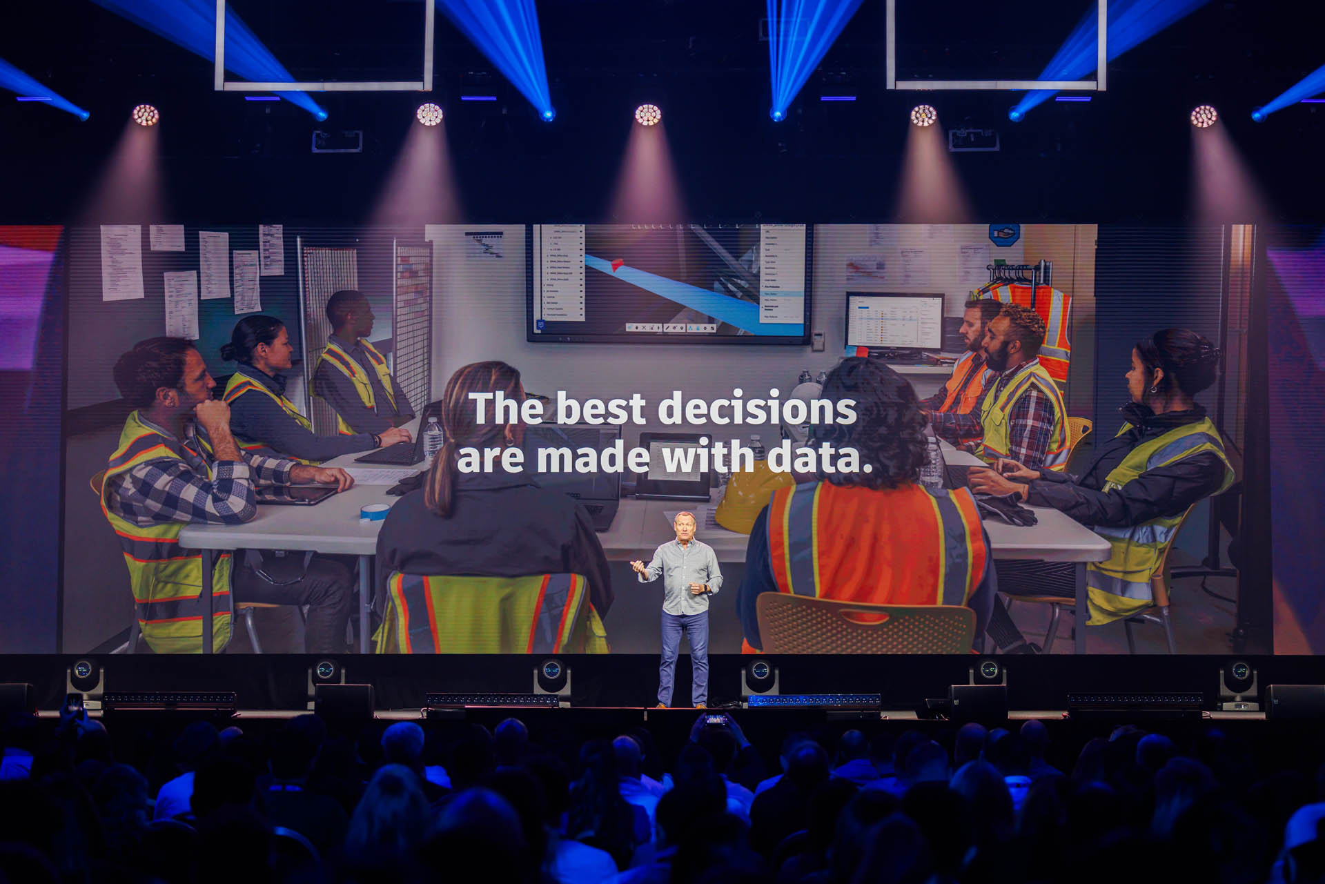 Main image: Jim Lynch, executive VP Autodesk construction solutions on the stage at AU