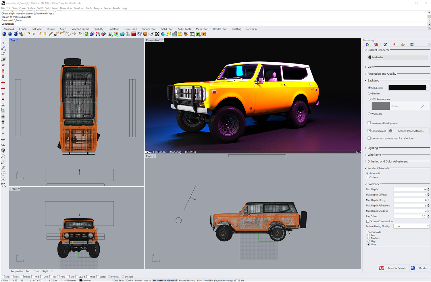 AMD’s free physically-based renderer can be deeply embedded inside Rhino 7.0. By harnessing the power of the GPU it can deliver stunning photorealistic imagery directly in the Rhino viewport