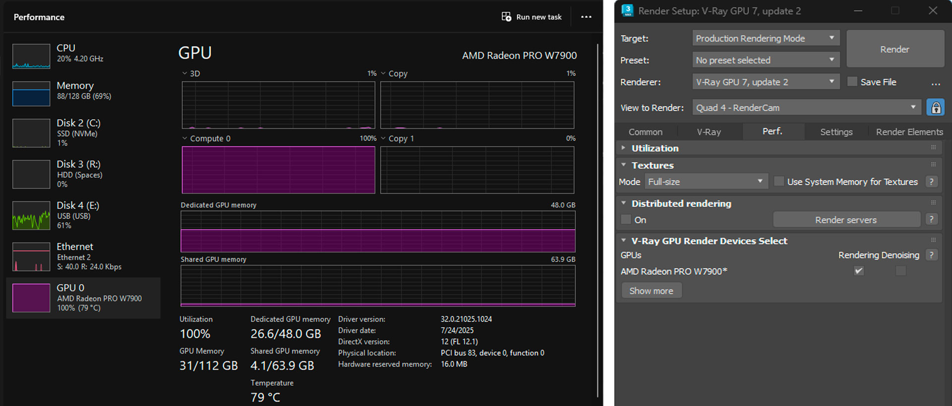 At Autodesk University last month, both Dell and HP showcased V-Ray GPU running on AMD GPUs – Dell on a desktop workstation with a discrete AMD Radeon Pro W7600 GPU and HP on a HP ZBook Ultra G1a with the new AMD Ryzen AI Max+ 395 processor, where up to 96 GB of the 128 GB unified memory can be allocated as VRAM.