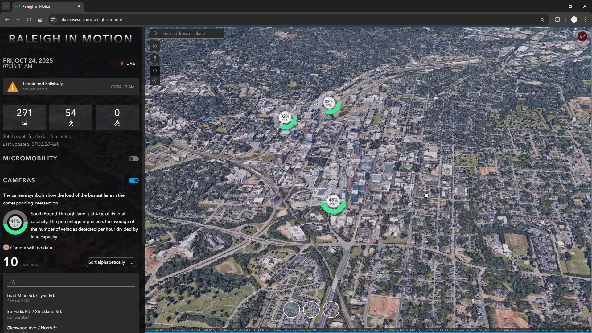 By fusing real-time streaming data via ArcGIS GeoEvent Server with computer vision capabilities from Nvidia, this digital twin can help Raleigh identify dangerous intersections, reduce congestion and provide safer roadways for vehicles, bikes, and pedestrians.